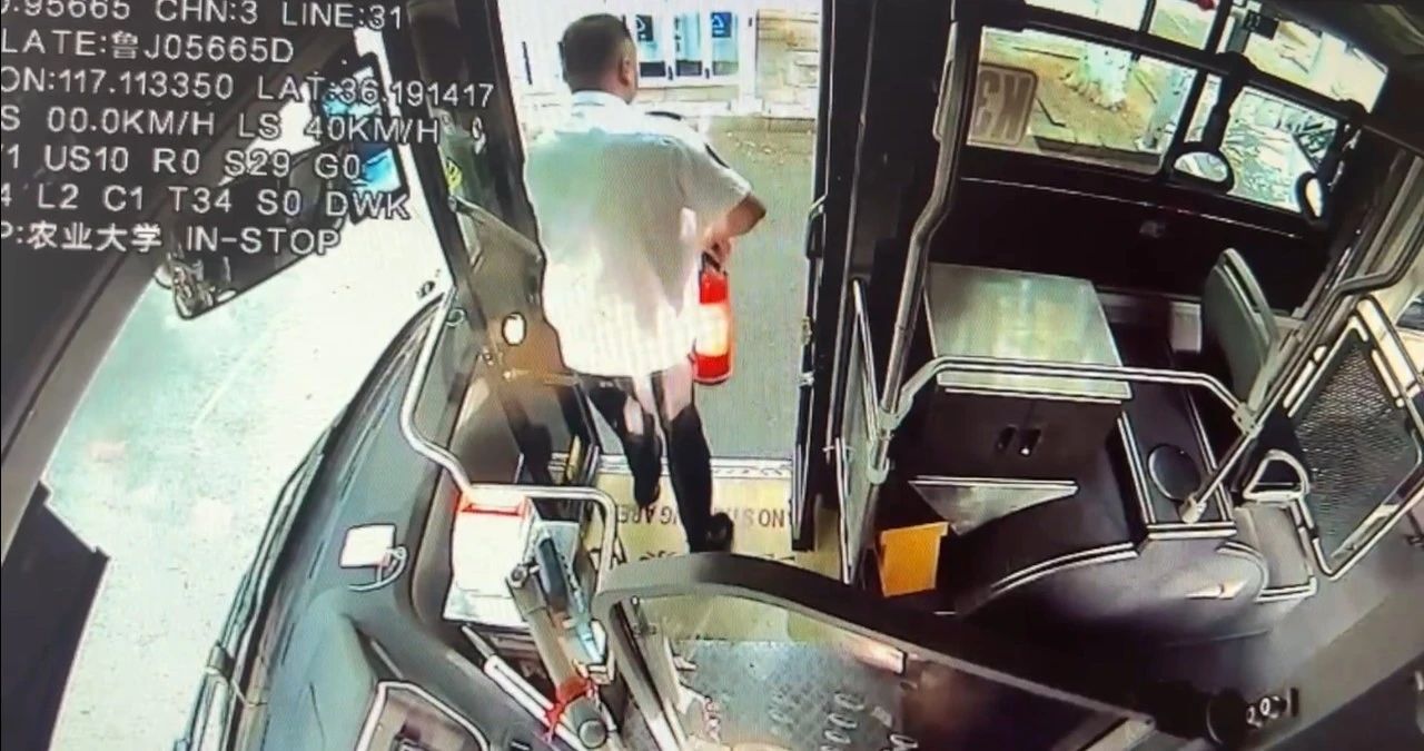 千鈞一發(fā)之際,秦濤立即將公交車安全???,開啟危險警示燈并向乘客說明情況。他迅速取出車載滅火器沖向火源,熟練拔掉保險銷,對準(zhǔn)火焰根部持續(xù)噴射。盡管刺鼻濃煙熏得人睜不開眼,他仍堅守現(xiàn)場,直至火勢完全撲滅。確認(rèn)無復(fù)燃風(fēng)險后,秦濤才返回崗位繼續(xù)運營,整個過程僅用時5分鐘,其冷靜處置獲車內(nèi)乘客紛紛稱贊。