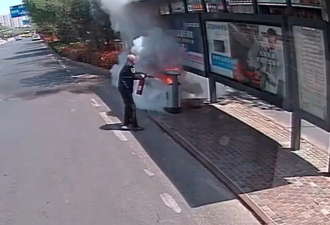 當(dāng)日12時30分許,趙正水駕駛魯J07959D公交車行至榮軍醫(yī)院站,發(fā)現(xiàn)站臺港灣處的垃圾桶濃煙滾滾,伴有明火。面對突發(fā)火情,趙正水立即將車輛??恐涟踩珔^(qū)域,開啟雙閃警示燈,并安撫車內(nèi)乘客:“請大家不要驚慌,我下車處理火情,很快回來!”隨即,他迅速取出車載滅火器沖向火源,對準(zhǔn)起火點(diǎn)精準(zhǔn)噴射,僅用一分鐘便撲滅明火。為防止復(fù)燃,他又返回車內(nèi)取水,對燃燒殘留物進(jìn)行澆水降溫,確認(rèn)隱患徹底消除后,才回到駕駛崗位繼續(xù)運(yùn)營。