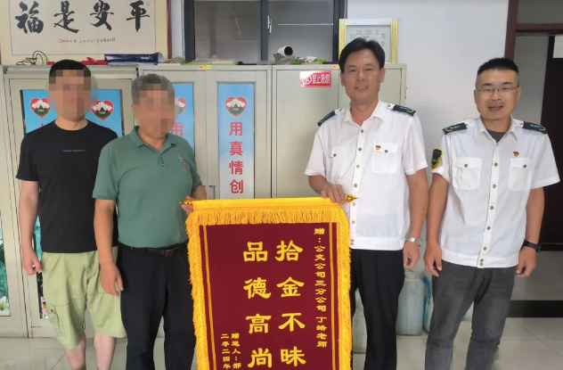 “金杯銀杯,不如乘客的口碑”。近日,泰城市民邢先生與家人一起將一面寫有“拾金不昧 品德高尚”的錦旗送到市公交公司第三分公司辦公室,對(duì)撿到他錢包的67路公交車駕駛員丁皞表示感謝,并對(duì)公交駕駛員拾金不昧的高尚品行大加贊賞。