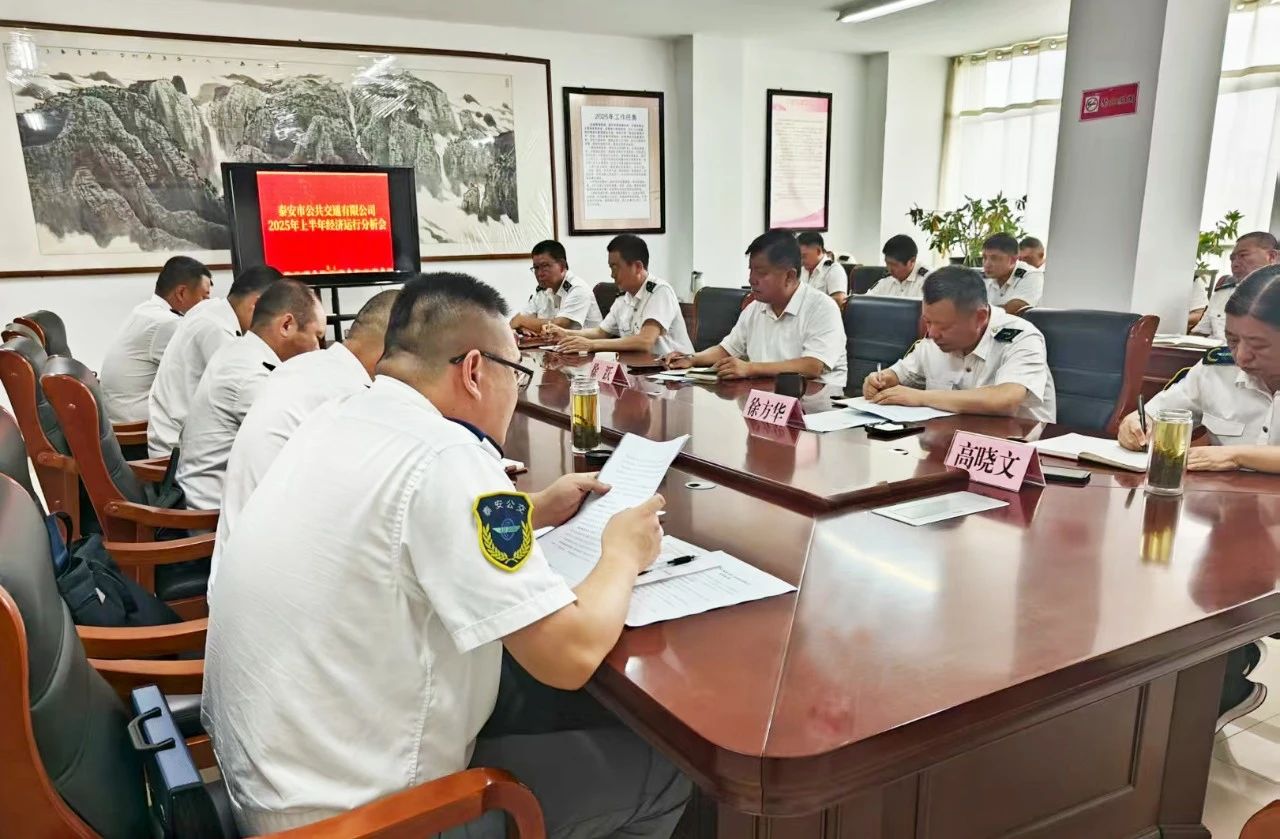 7月24日,泰安公交召開2025年上半年經濟運行分析會。本次會議全面總結上半年經濟運行情況,深入分析存在的問題和困難,并科學謀劃下半年重點工作方向。會議由公司黨委委員、董事、副經理徐方華主持,公司黨委書記、董事長、總經理徐躍出席會議并講話,公司領導班子成員,各分公司、三產單位、部室主要負責人參會。