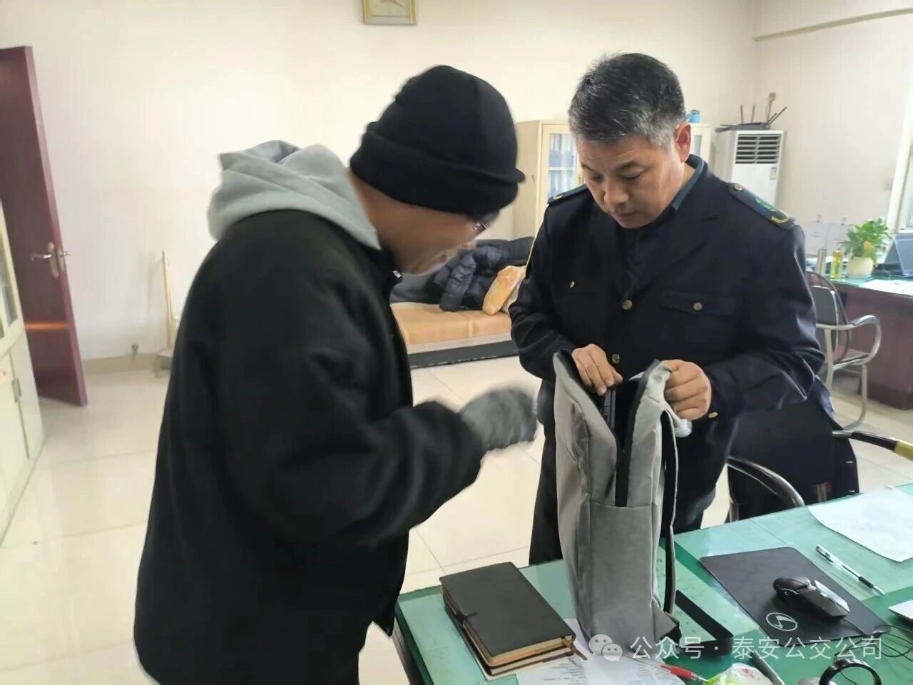據(jù)了解,齊同學(xué)從濟南來泰安上學(xué),當天晚上從泰山火車站乘坐39路公交車前往學(xué)校。乘車途中,齊同學(xué)因看手機,下車時不慎將裝有筆記本電腦和現(xiàn)金的背包遺落在車廂內(nèi),直到抵達學(xué)校后才發(fā)現(xiàn)背包丟失。心急如焚的齊同學(xué)立刻返回下車的站點尋找,但公交車早已駛離;他又匆忙趕回乘車的泰山火車站公交樞紐站,依舊沒有看到剛才乘坐的那輛公交車的身影。情急之下,齊同學(xué)向樞紐站里的一位公交駕駛員詢問了39路所屬分公司的聯(lián)系電話,隨即撥通電話向分公司工作人員求助。