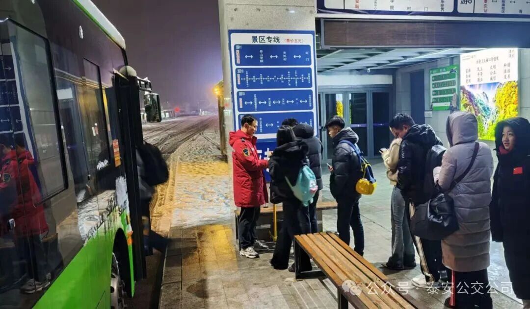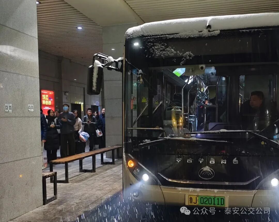 當(dāng)日,泰城遭遇降雪天氣,強(qiáng)降雪導(dǎo)致路面濕滑難行,受降雪天氣影響多趟高鐵列車(chē)晚點(diǎn),大量乘客出行需求異常迫切。按照泰安公交安排部署,為全力保障乘客出行暢通,泰安公交第五分公司迅速啟動(dòng)應(yīng)急保障機(jī)制,第一時(shí)間強(qiáng)化與高鐵站的信息聯(lián)動(dòng),安排專(zhuān)人實(shí)時(shí)對(duì)接列車(chē)晚點(diǎn)及旅客聚集情況,精準(zhǔn)調(diào)度、增派運(yùn)力,用責(zé)任與堅(jiān)守搭建起風(fēng)雪中的“暖心通道”。